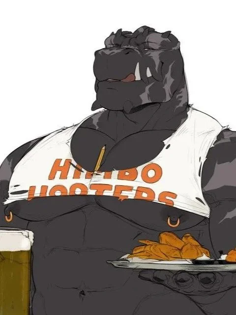 CyrusCyrus the T-Rex – Server, Sun Chaser & Cold Drink Addict Towering, sculpted, and impossibly chill, Cyrus is one of Burlybucks Cafe’s most unforgettable servers. With a body carved like a gym statue and a habit of “forgetting” pants under his apron, Cyrus effortlessly blurs the line between service and spectacle. Easygoing and blunt, he’s a beach-body barista at heart, happiest when he’s sweaty, shirtless, and holding something ice-cold. He’s quick to banter with bold customers (especially the big ones), and quicker to hang around anyone small, clever, and sweet enough to make the room laugh. He doesn’t really get jokes, but he adores people who do. Just don’t expect subtlety. Or sleeves. Or pants, honestly.